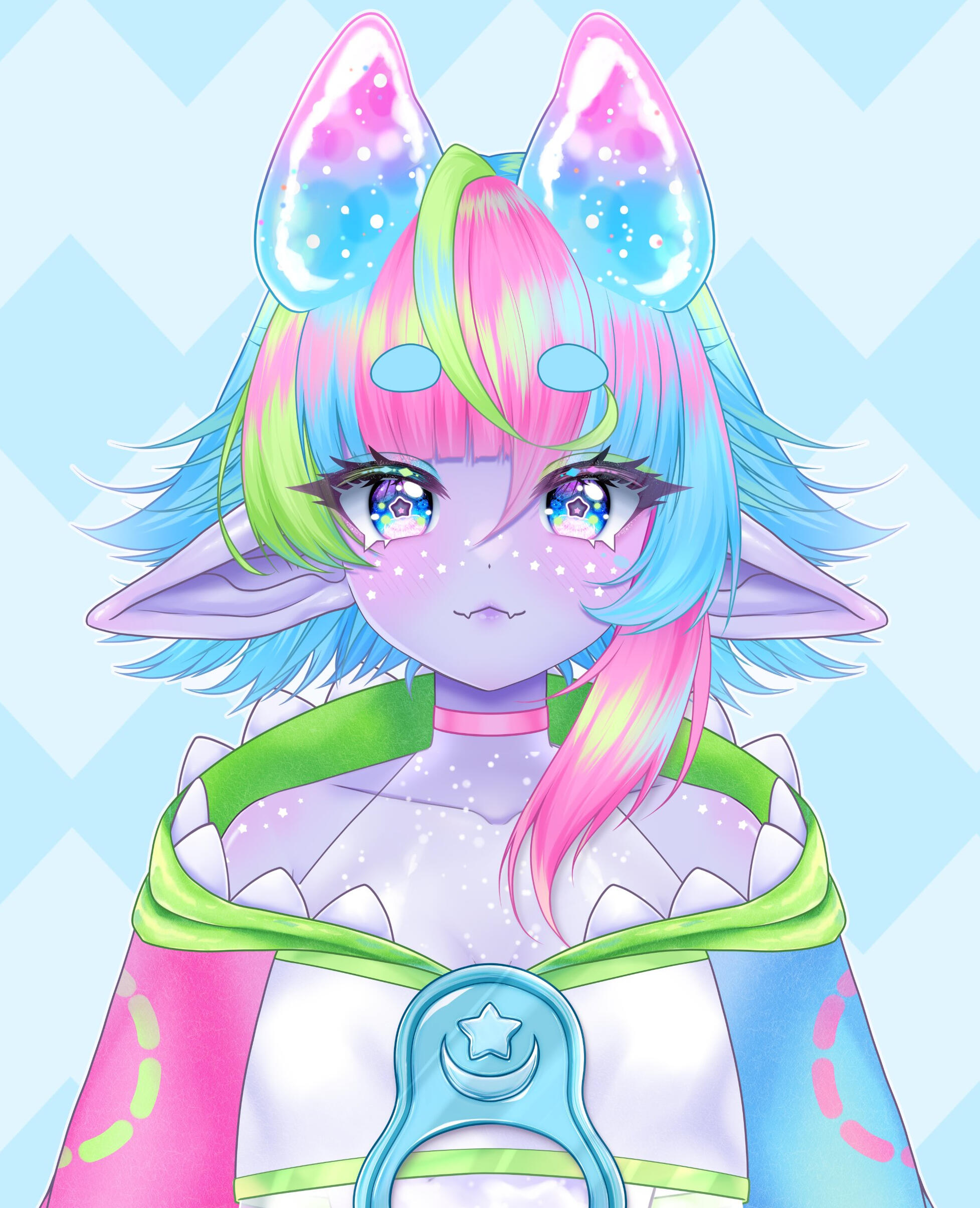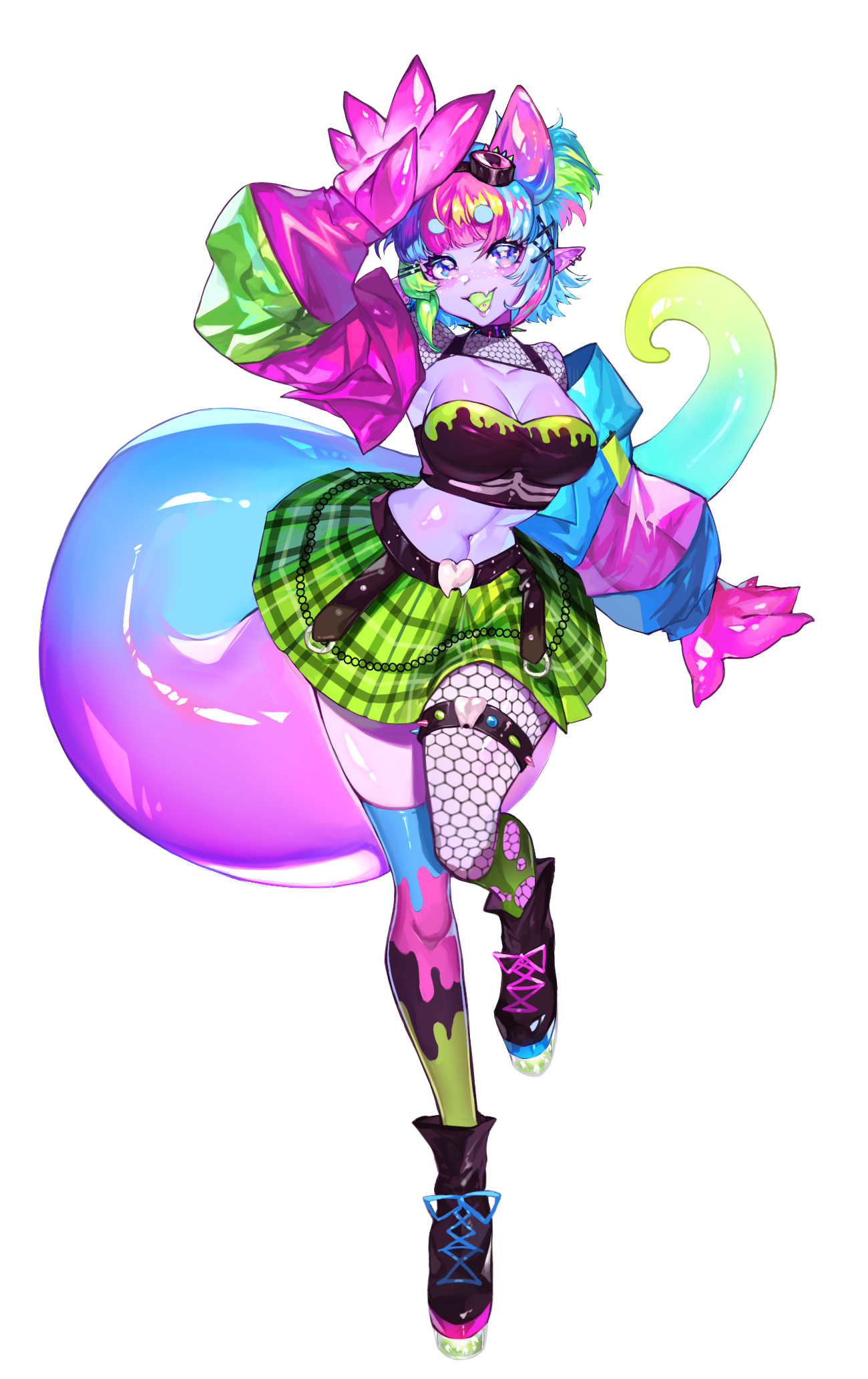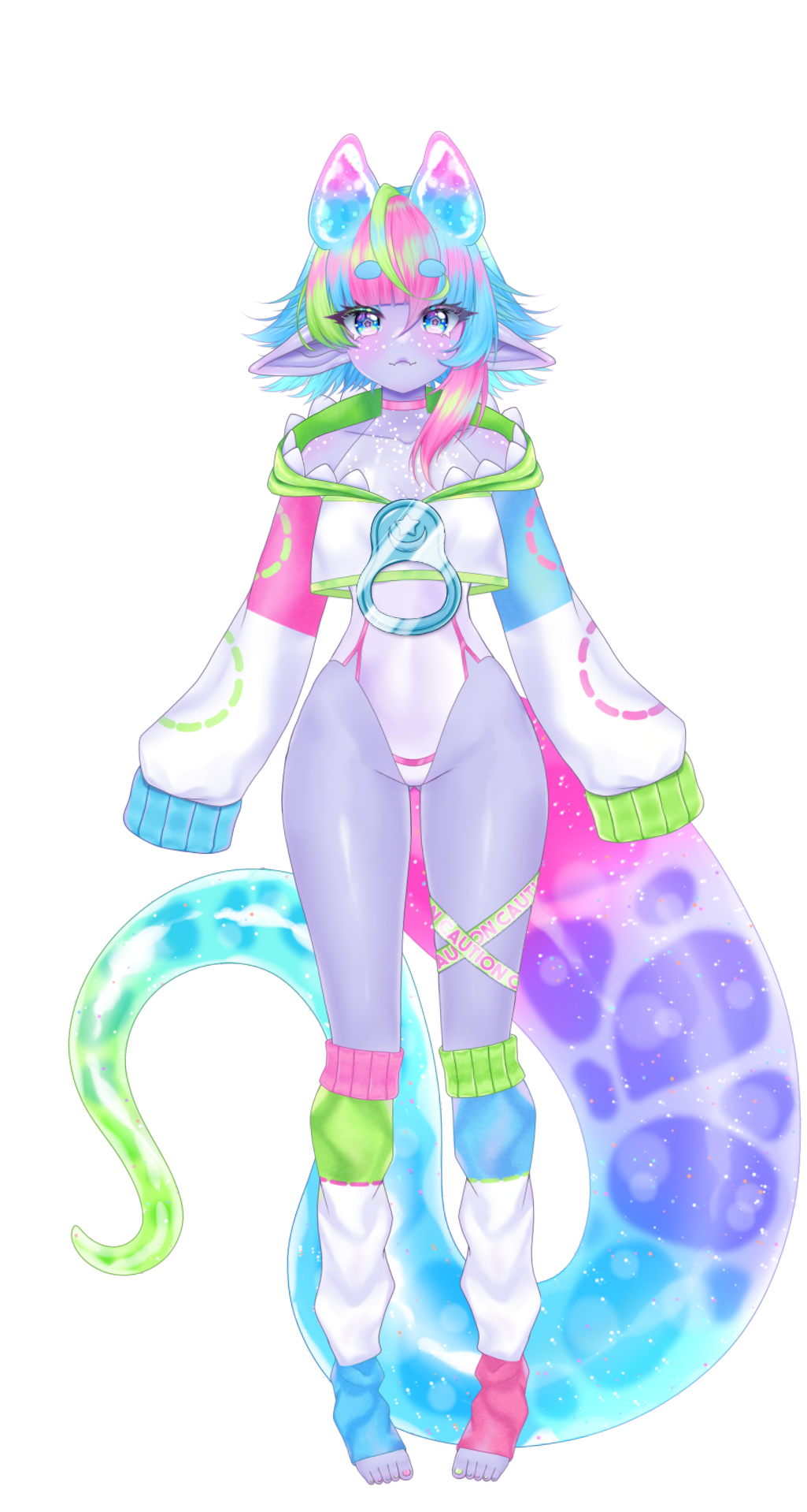 Echo’s base hairstyle is super specific. Some bits are longer on one side then the other and a piece of her bangs isnt cut. She also has bean brows which are super important.Her freckles and pupils are star shaped!Horns!! They are jiggly… like jello.. (so is her tail)Her mouth is always shaped like a : 3 !She has a tongue piercing!!(Punk outfit) the white shapes in the clear part of her shoes are teeth. She has teeth in her shoes (also green slime)