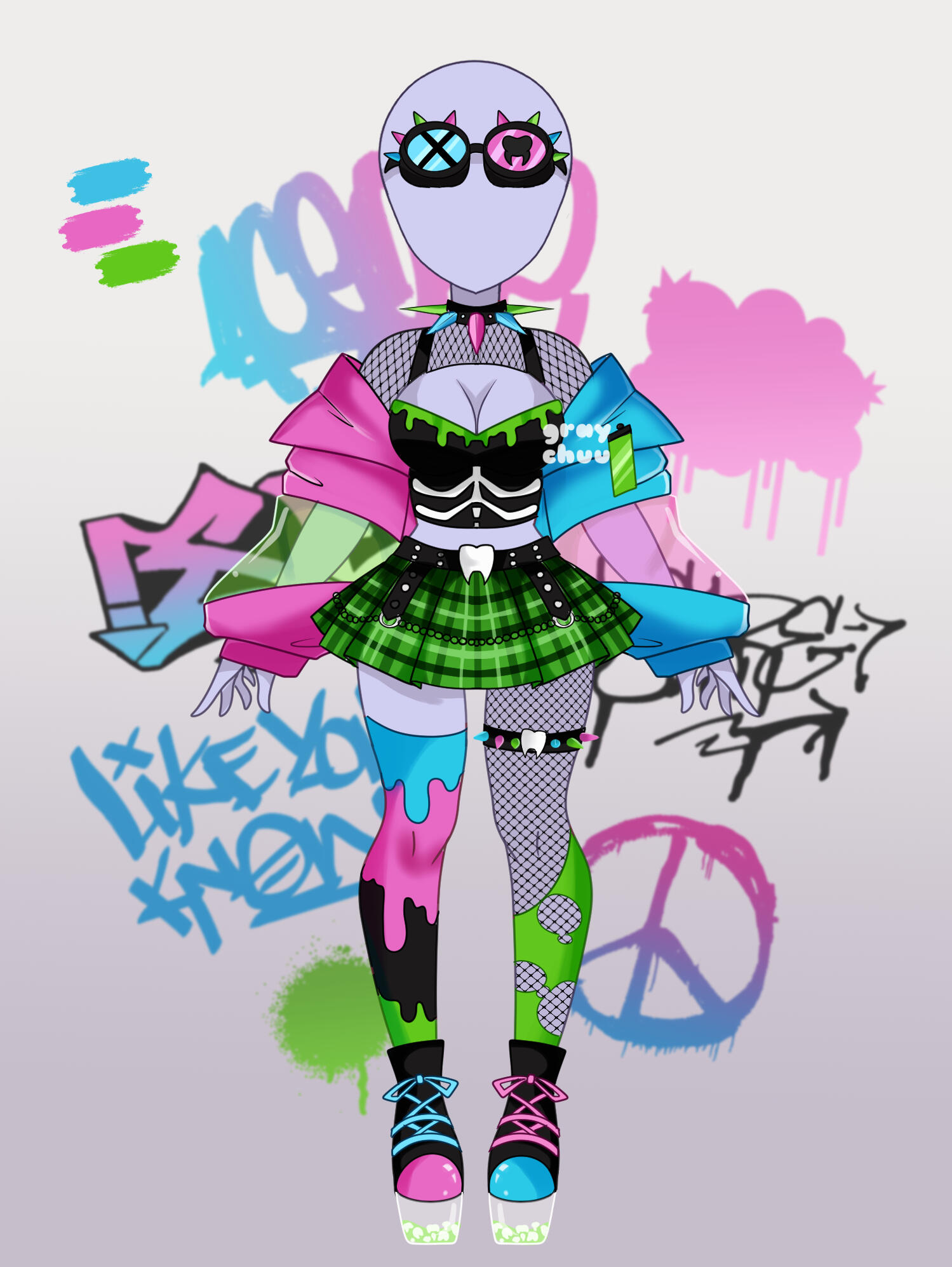 Echo’s base hairstyle is super specific. Some bits are longer on one side then the other and a piece of her bangs isnt cut. She also has bean brows which are super important.Her freckles and pupils are star shaped!Horns!! They are jiggly… like jello.. (so is her tail)Her mouth is always shaped like a : 3 !She has a tongue piercing!!(Punk outfit) the white shapes in the clear part of her shoes are teeth. She has teeth in her shoes (also green slime)